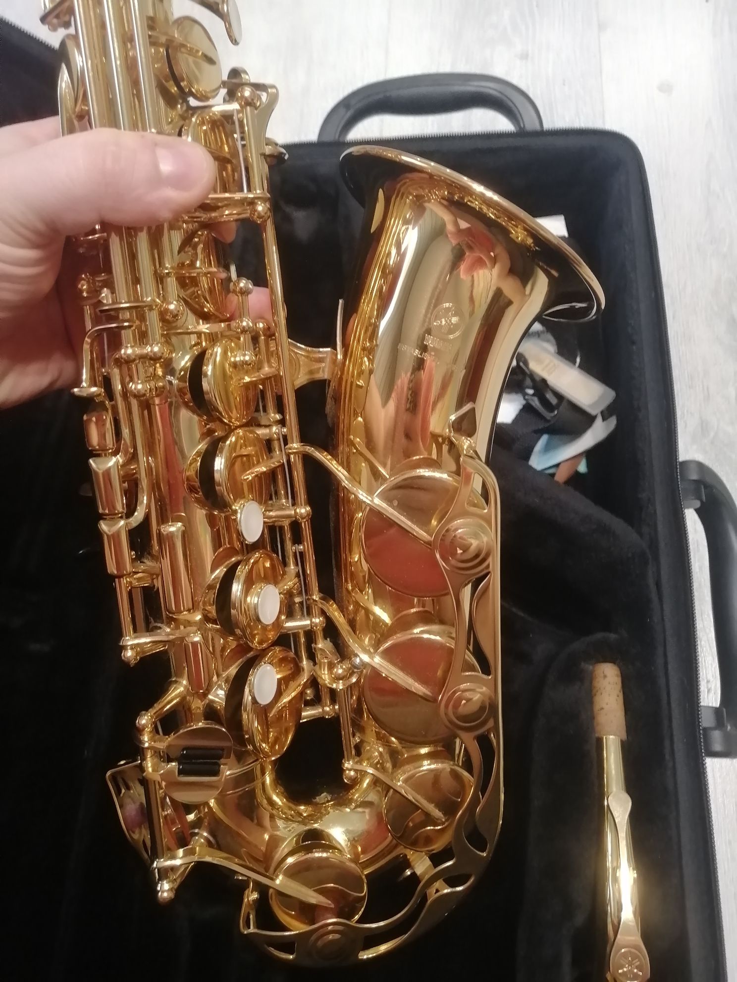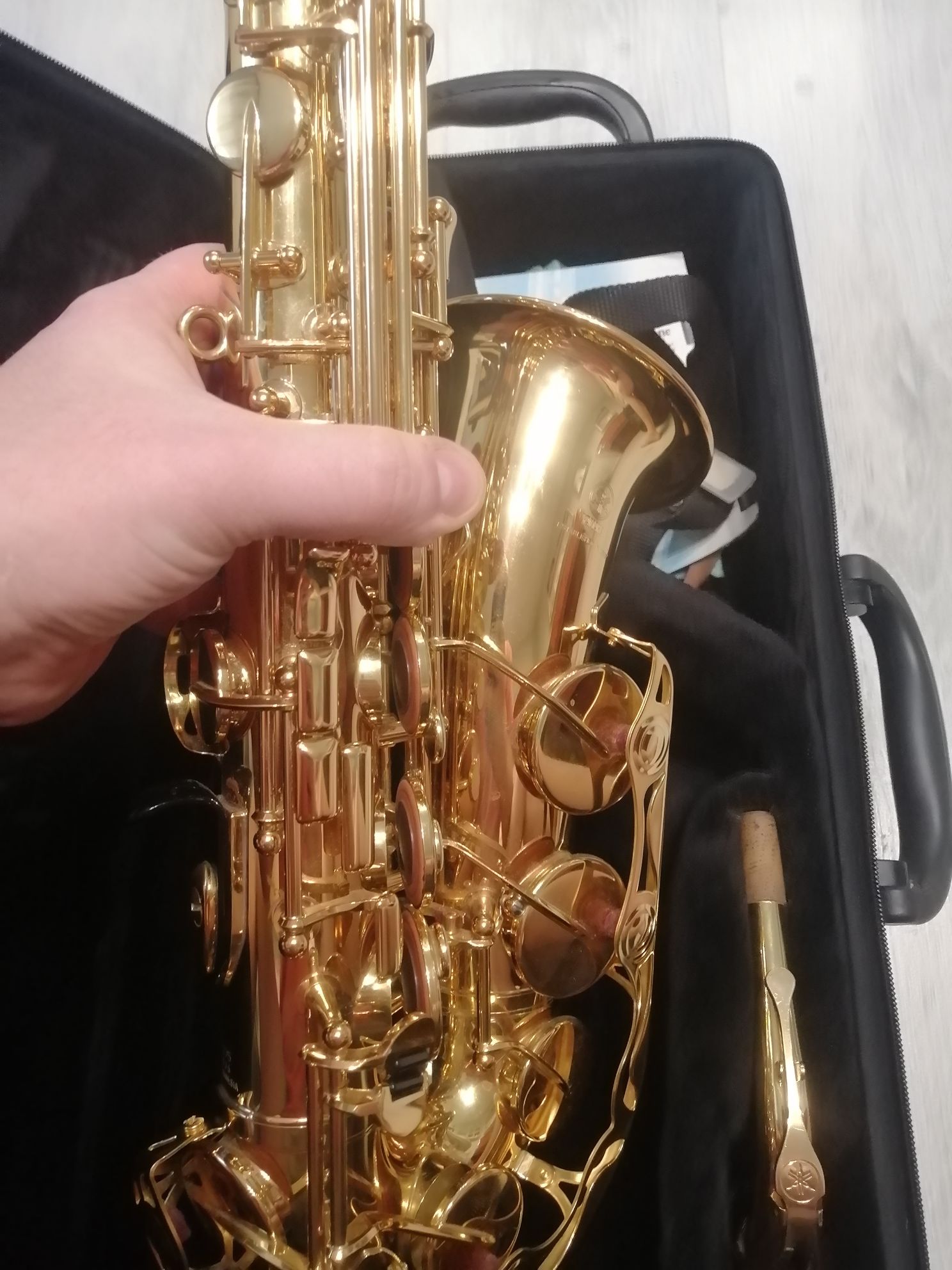 Комплектация полная: саксофон, эска, мундштук Yamaha 4c с лигатурой и колпачком , гайтан, фирменный очень удобный полужесткий кофр "Yamaha, трость.