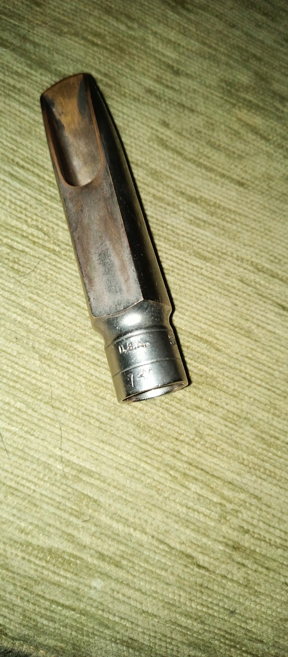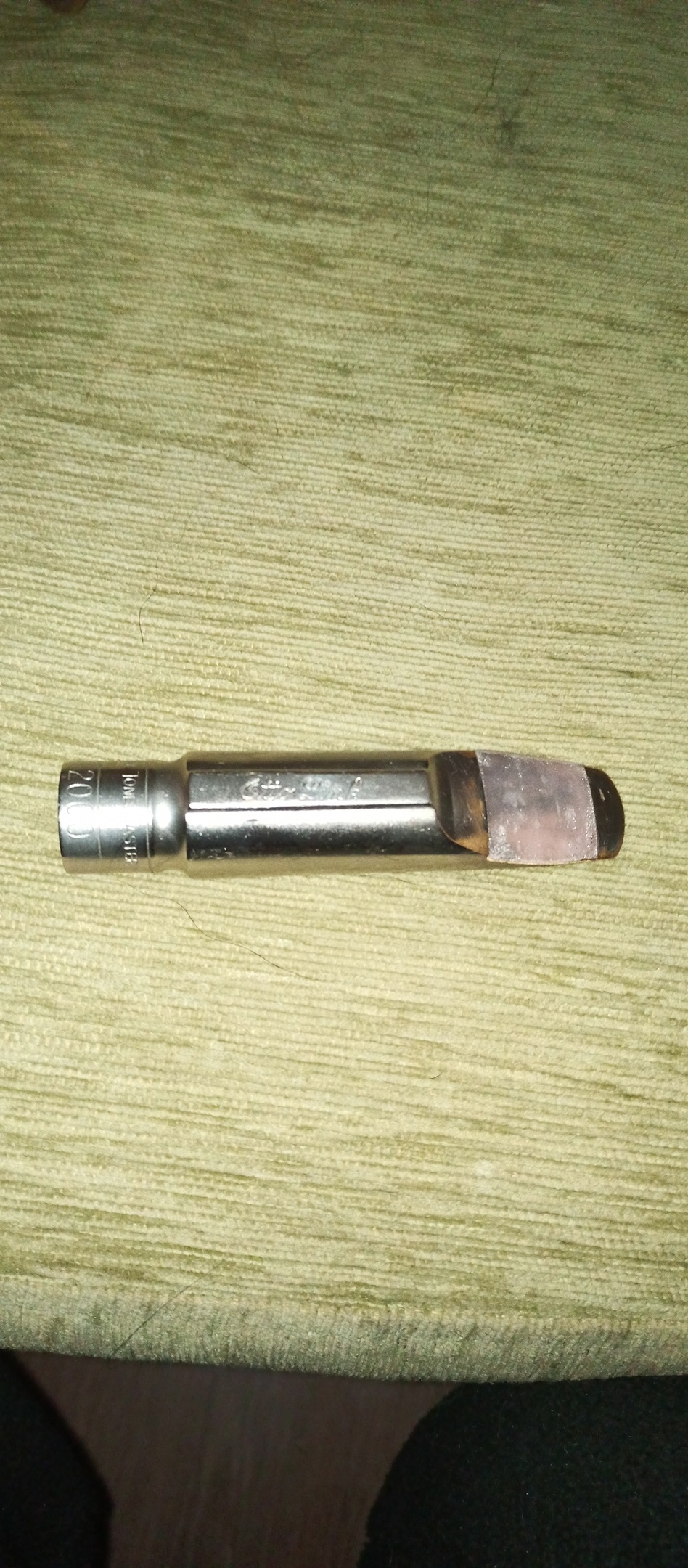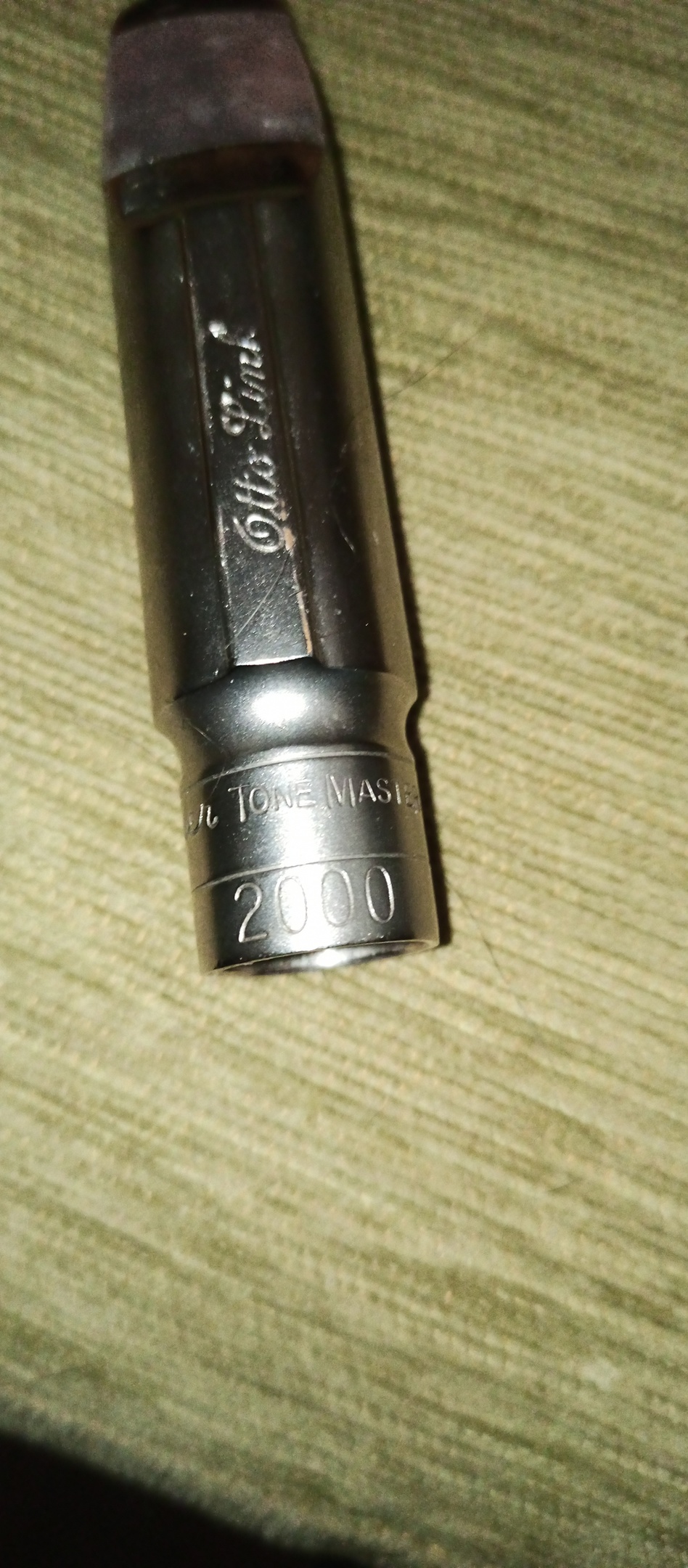 С ним идет мундштук Otto link Millenium. Приобрел я его уже убитый, так что у мастера менял площадку, соответственно, она не оригинальная (и другого цвета), что на качество игры не влияет.