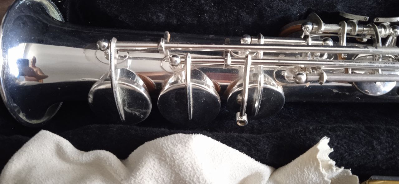 В комплекте стоковый мундштук (очень ровно звучит) и родной кейс.