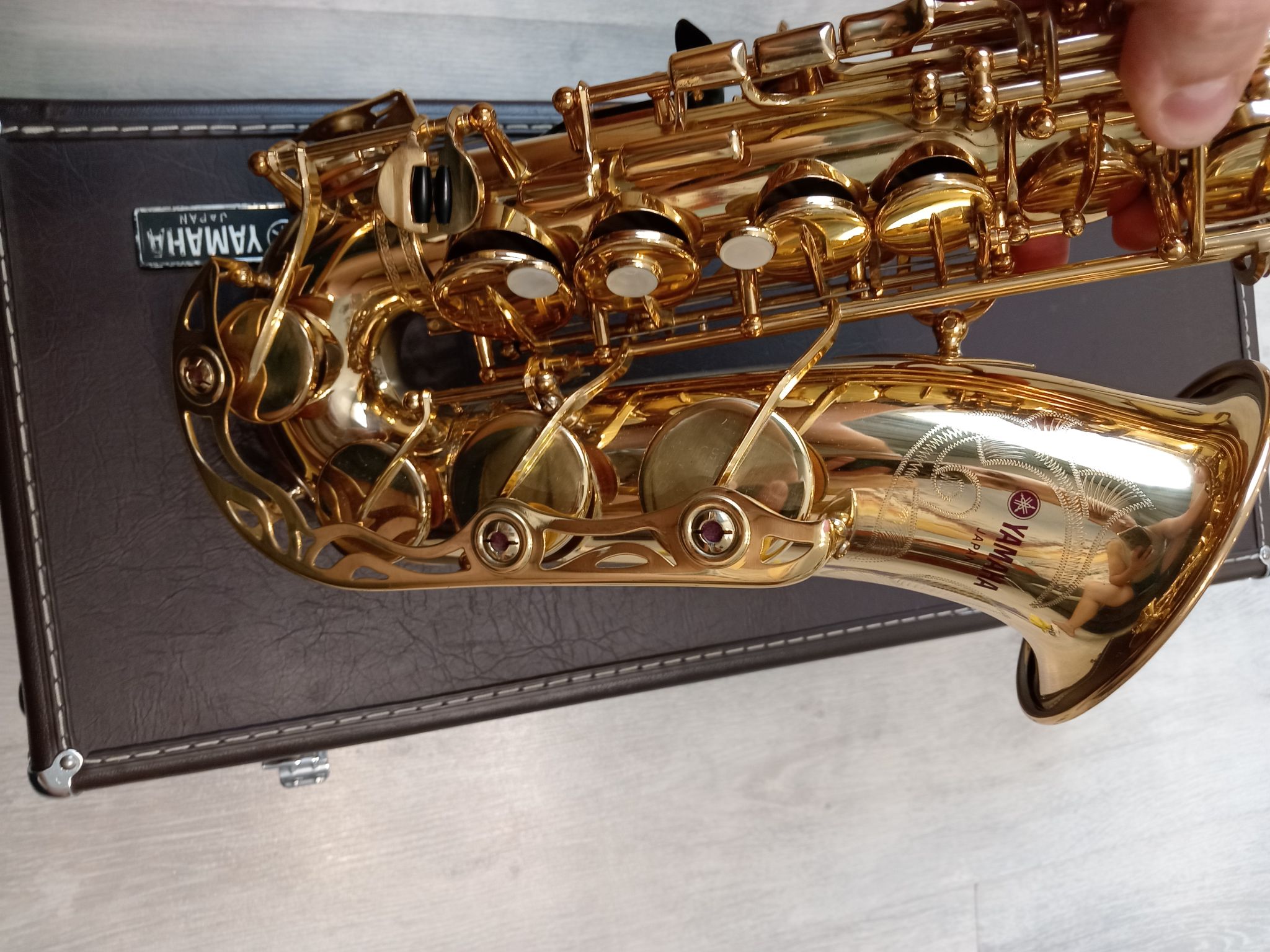 Комплектация полная: саксофон, эска, демонстрационный мундштук с лигатурой и колпачком , гайтан, фирменный очень удобный жесткий кофр, трость.