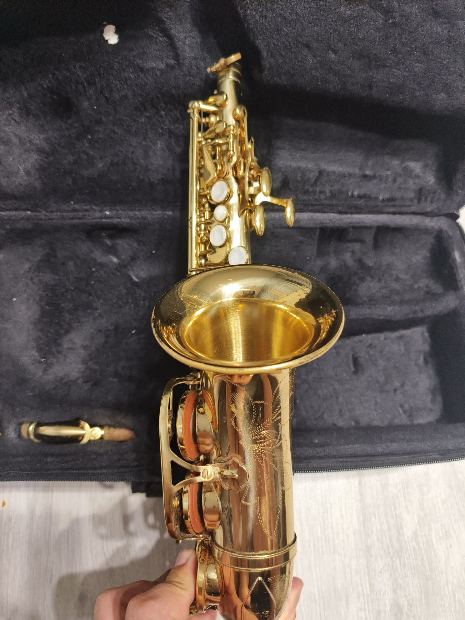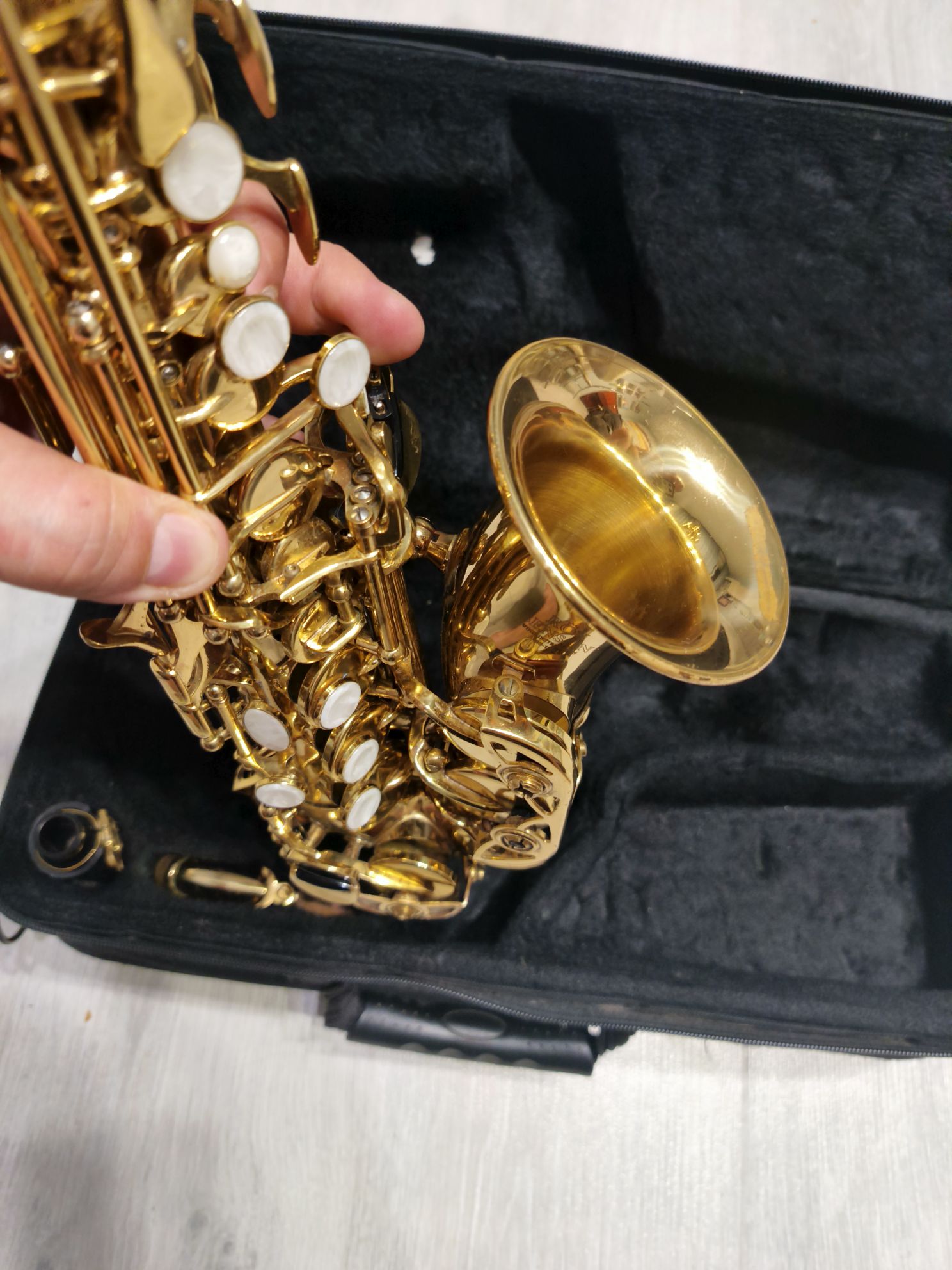 Продам саксофон гнутый сопрано фирмы "Roy Benson". Обычно саксофоны модели “гнутый сопрано“ приобретают для совсем юных, начинающих исполнителей, но подойдет и для других целей. Инструмент б/у, но в хорошем состоянии. Есть потёртости, небольшие следы ржавчины, но на звучание саксофона это абсолютно никоим образом не влияет.