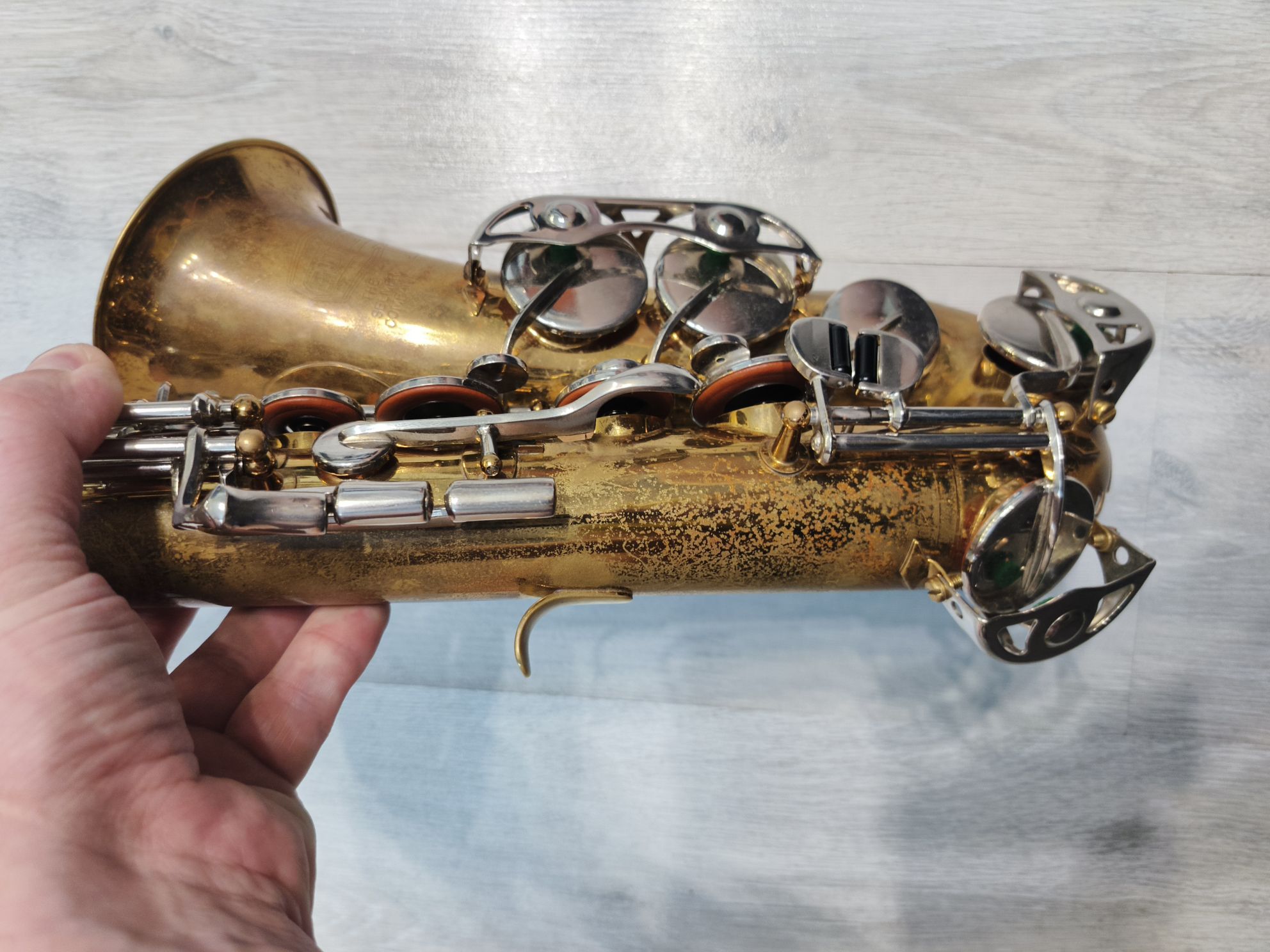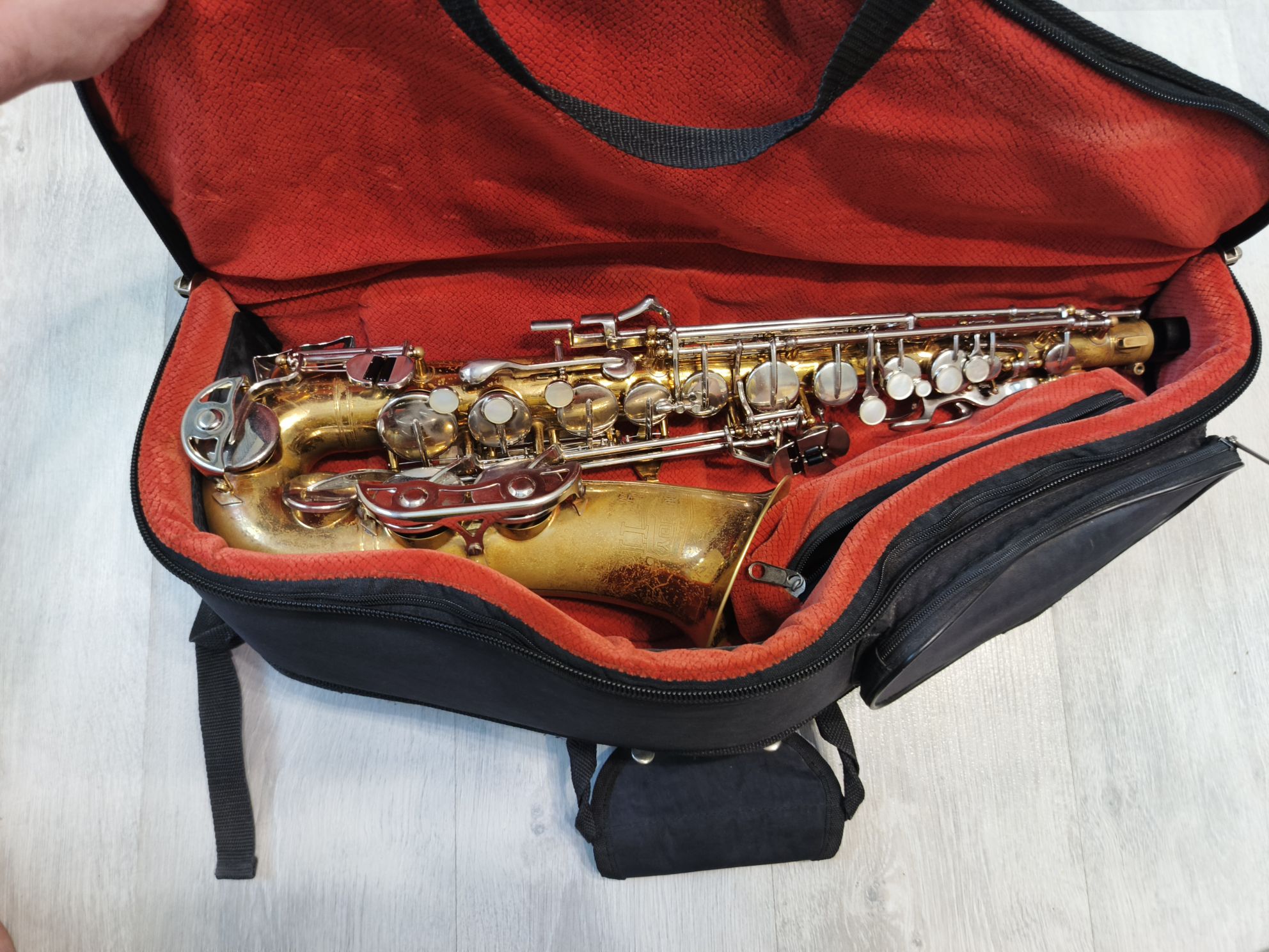 Комплектация полная: саксофон, эска, новый мундштук D. Krenz с лигатурой и колпачком, жёсткий кофр, гайтан, трость. На пересыл согласен.