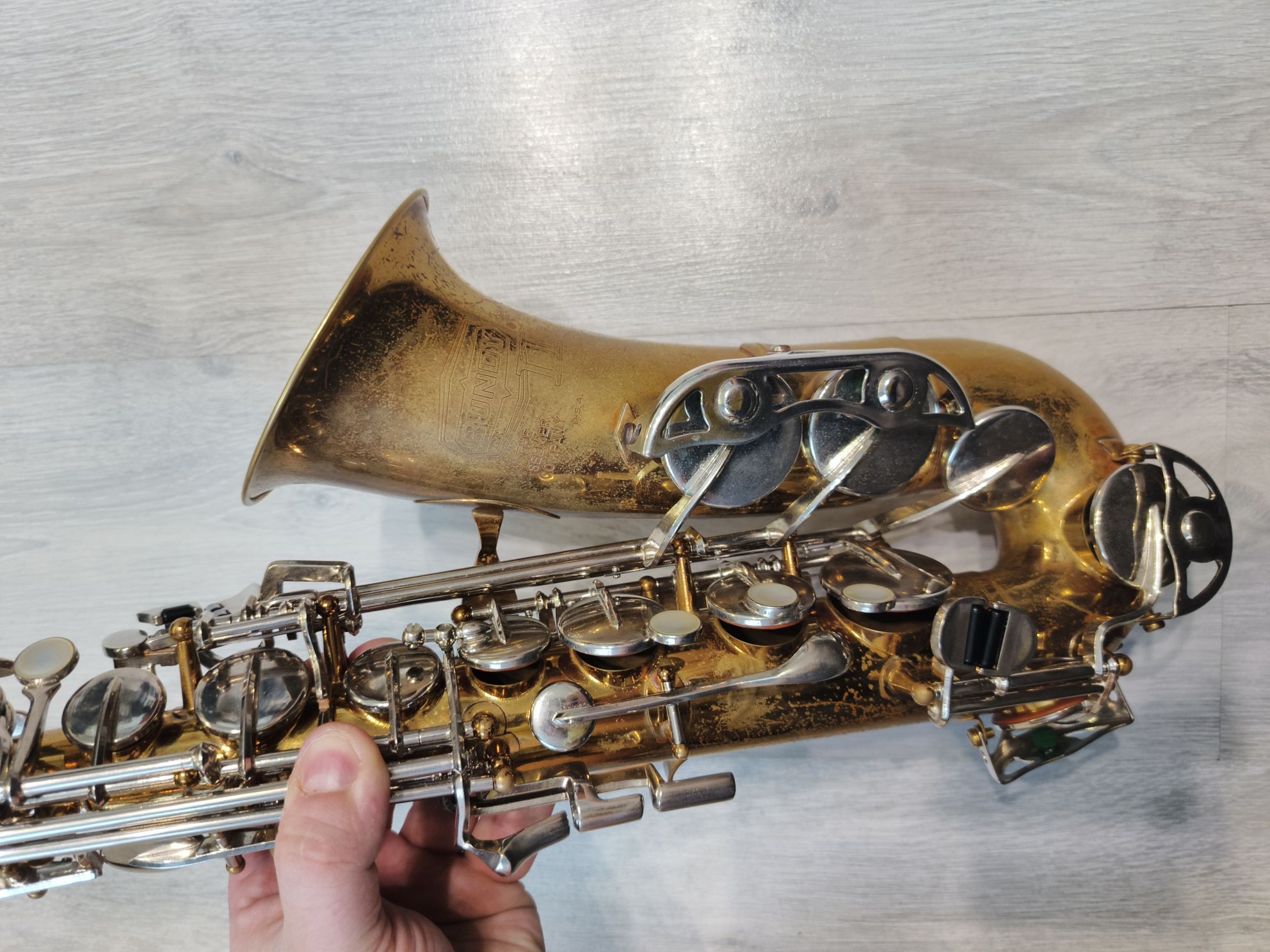 Продам альт саксофон "Selmer Bundy II". Студенческая модель. Производство - Америка. Инструмент перед продажей полностью перекрыт (стоят абсолютно новые подушки) и отрегулирован. Саксофон идеально кроет и хорошо строит (есть видео звучания саксофона, если нужно пишите в личку, обязательно скину). На корпусе инструмента есть косметические дефекты, которые абсолютно ни на что не влияют.