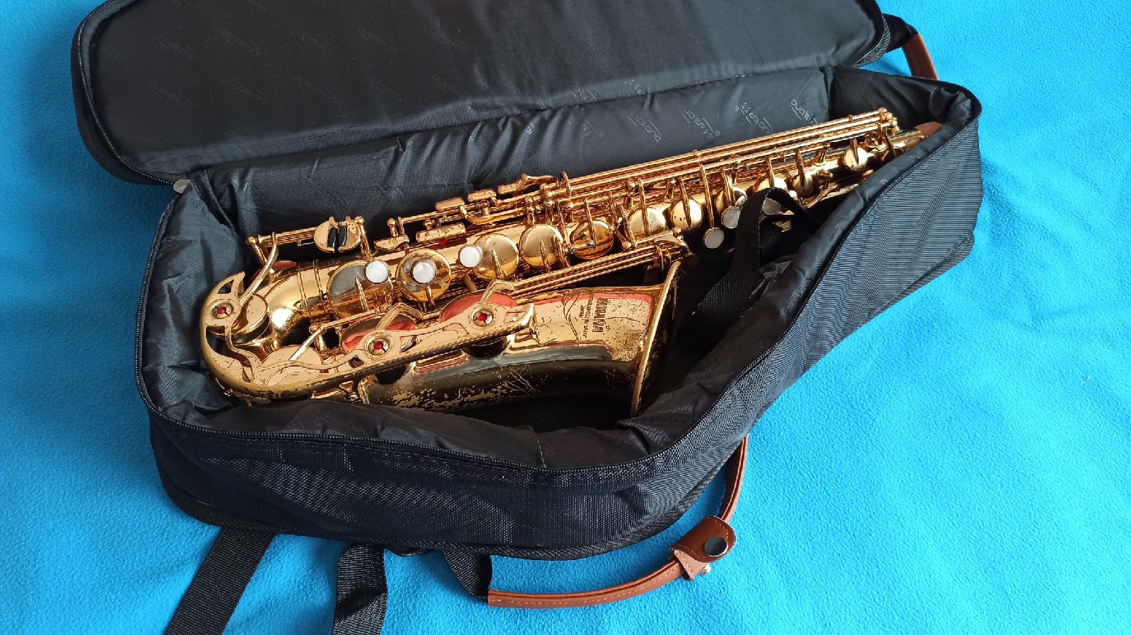 В комплекте чехол-рюкзак, новый мундштук (не ямаха), смазка, подвеска.