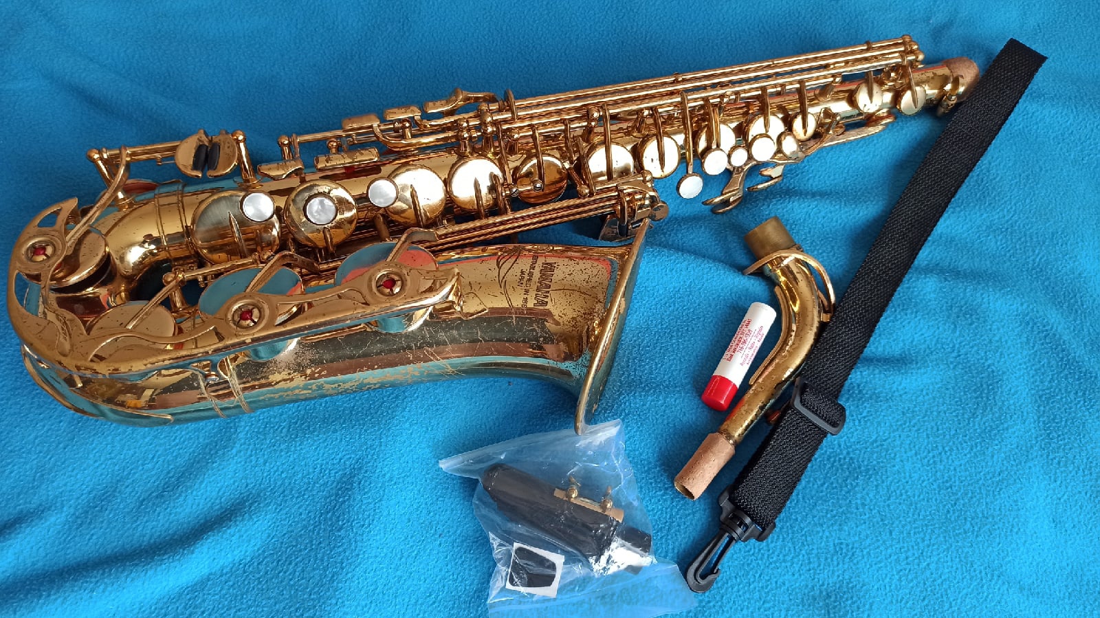 В комплекте чехол-рюкзак, новый мундштук (не ямаха), смазка, подвеска.