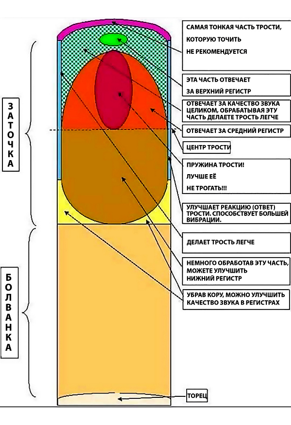 Полгода назад наткнулся на кларнетиста Алекса Венгерова, у которого была такая информативная табличка.Пробовал по ней доводить трость - всё супер)