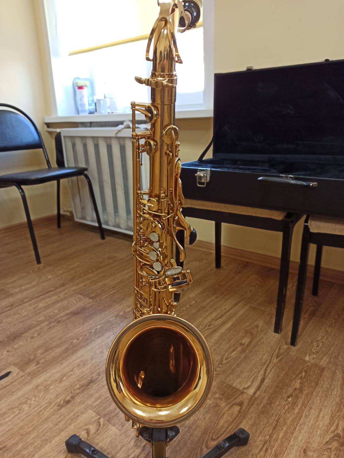 Комплектация полная: саксофон, эска, мундштук с лигатурой и колпачком, гайтан, кофр , трость.