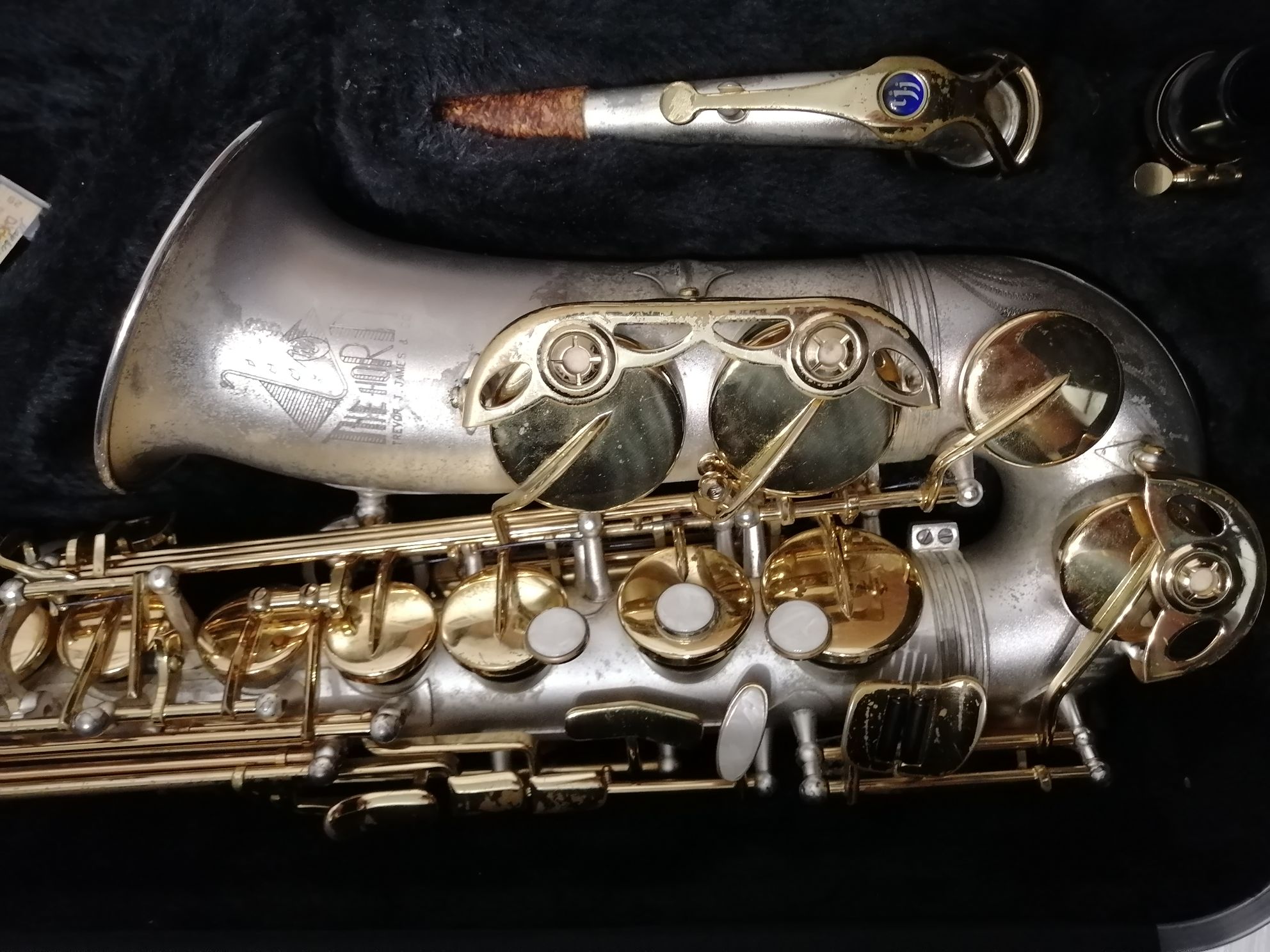 Саксофон кроет, строит, тембрит. На корпусе много потертостей, (внимательно смотрите фото), но на качество звука это никак не влияет.