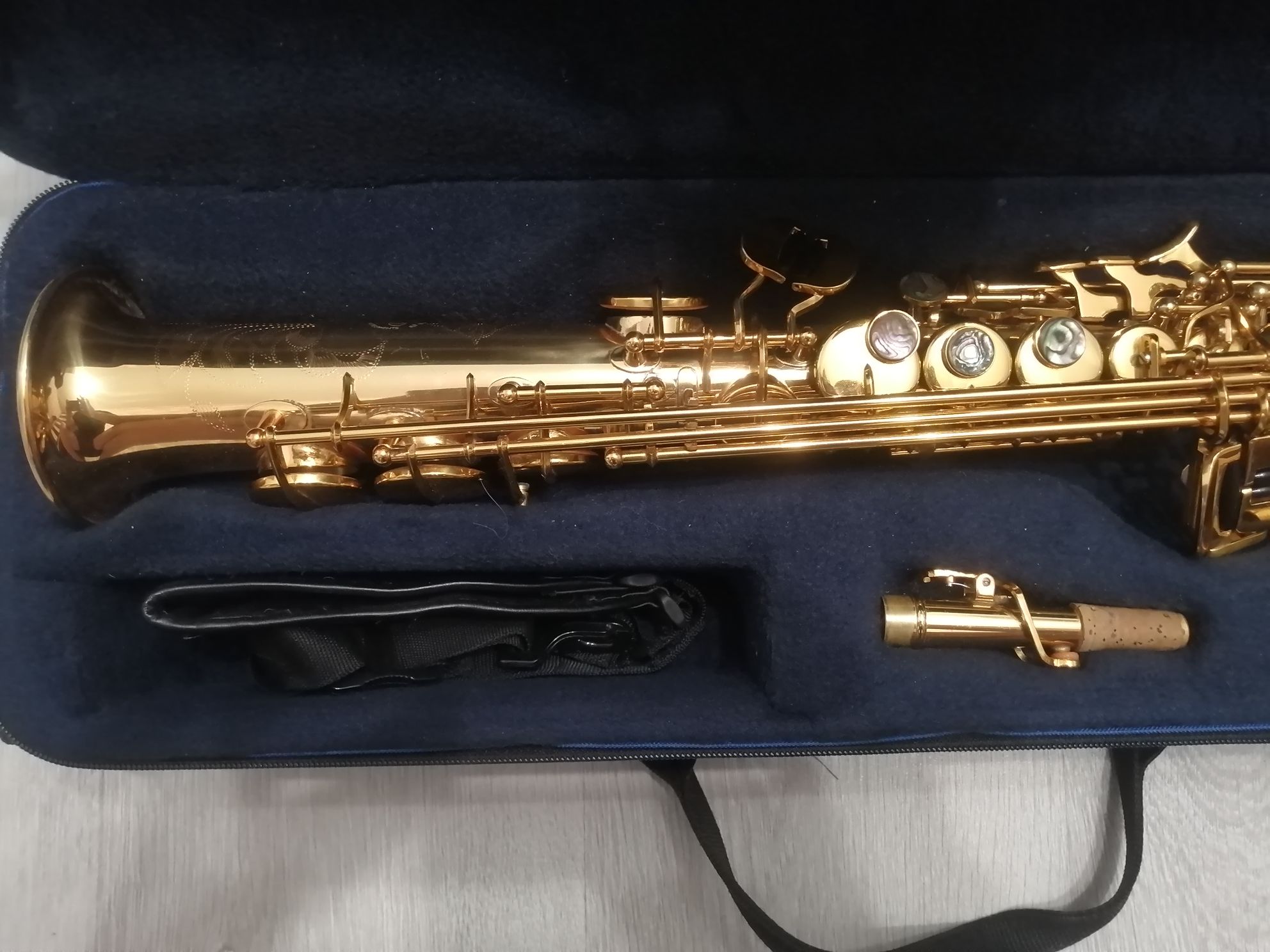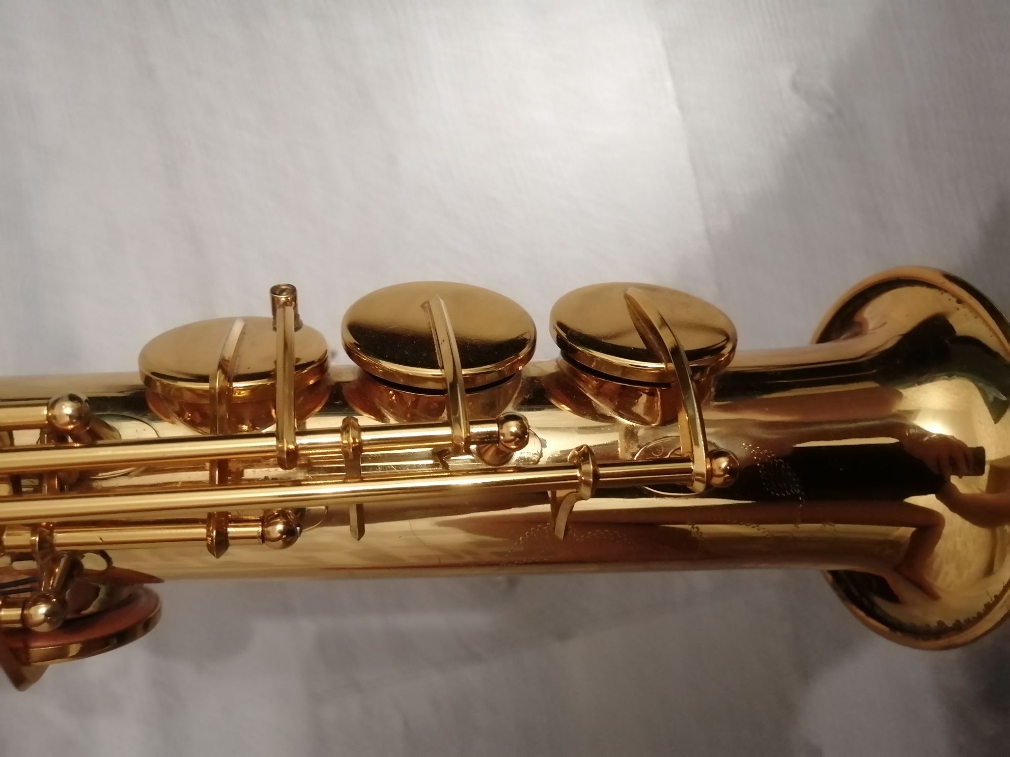 Очень известный бренд, хорошо зарекомендовавший себя на рынке духовых инструментов. Саксофон в очень достойном состоянии. Кроет и строит отлично. Звук чистый, яркий и правильный. Инструмент тембрит. На корпусе инструмента есть очень незначительные потертости (внимательно смотрите фото), которые на качество звука не влияют. Комплектация полная: саксофон, прямая эска, мундштук с лигатурой и колпачком , жёсткий родной фирменный чехол, трости, гайтан, наклейки на мундштук, смазка для пробки. Смотрите фото и видео.