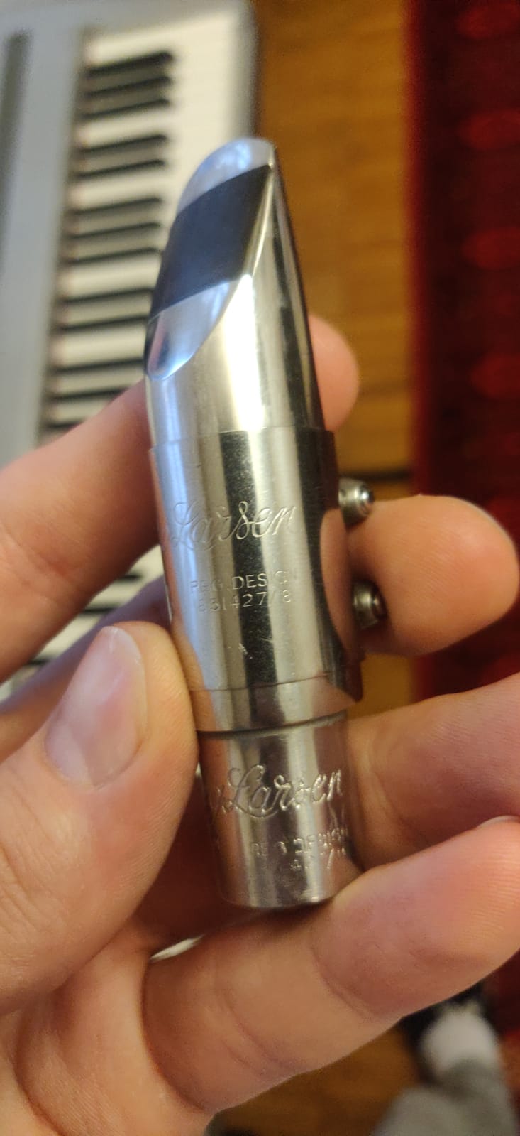 Новый такой у Бори Никитенко в магазе стоит 225 евро http://saxwebshop.com/contents/ru/p1102.html Только один нюанс: у Вас мунд не просто "старый", а именно старой конфигурации (у современных Бергов мост"прямой", примерно как у ARB, а у вашего - "пулевидный". Такие выпускались, если не ошибаюсь, где-то до середины 90-х. По концепции эти мунды заметно отличаются). Ну и номерок у Вашего не самый ходовой (100 - это означает открытие 0,100", т.е., соответствует 10-му номеру по Майеру). На таких номерах очень мало кто играет (самые "ходовые" альтовые размеры - 0,075-0,080", т.е. соответствующие Майеру 6М-7М). Плюс, нужно учитывать, что фейс - SMS, а это довольно специфический фейс, довольно короткий, нормально "работает" с тростями с короткой заточкой (таких немного: кроме "синих" Vandoren Classic навскидку ничего и не вспомню, пожалуй). Вообще, мунд интересный (хоть и довольно специфический). На таком хорошо рок-н-ролл лабать (звучок - то, что надо!)... Кстати, комплектные мунды от Амати СК (металлические) "содраны" именно с него (хотя, конфигурация моста немного отличается)