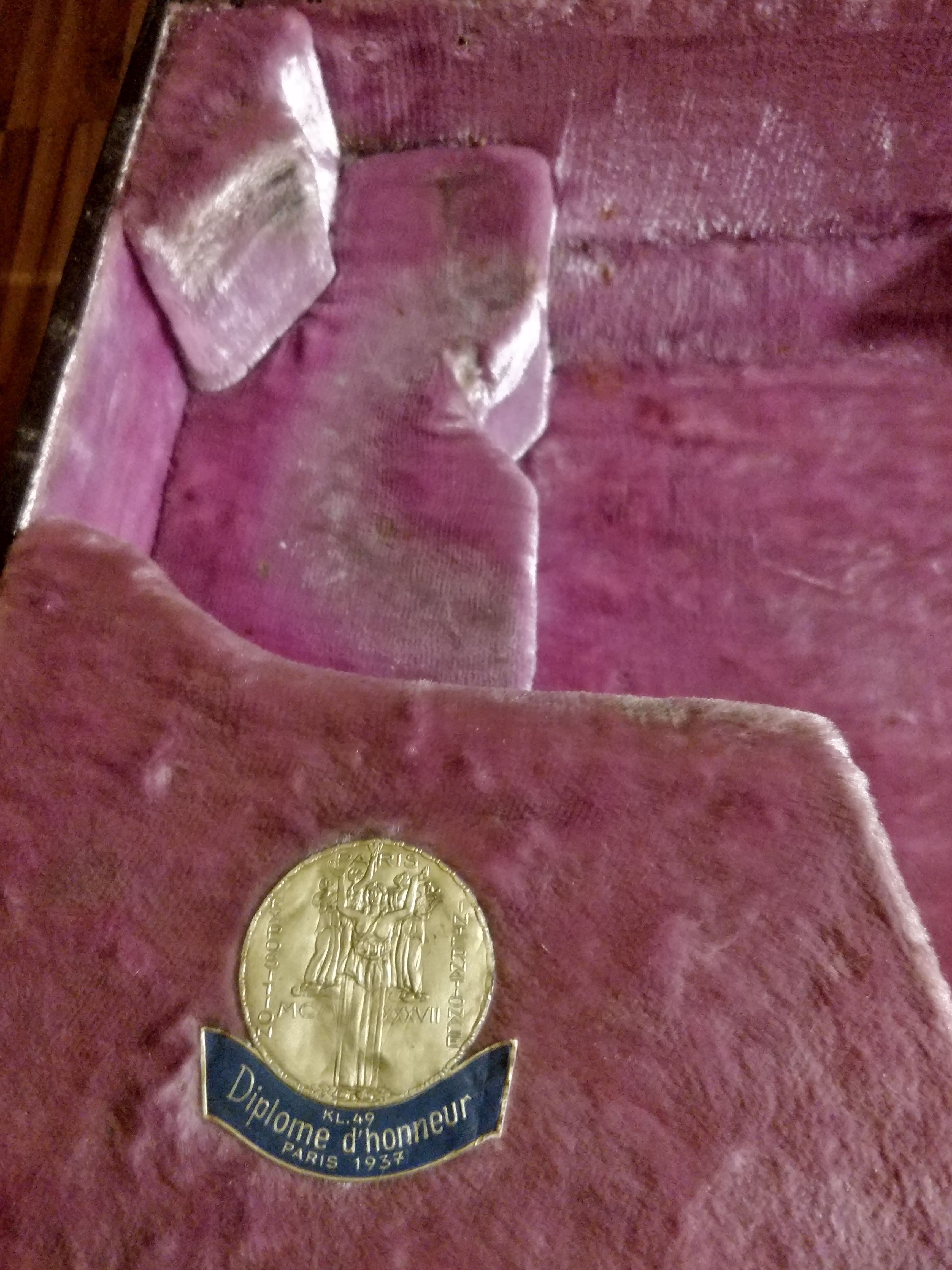 Сейчас прочитал в нет что медали сделаны из золотой фольги,их на чехле 3штуки,одна за "Экспоцентр" на современный лад,проходил этот Экспоцентр в 1934г.в Париже.А две другие медали ище не выяснил.