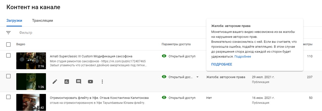 Ютуб. жалоба на авторские права.