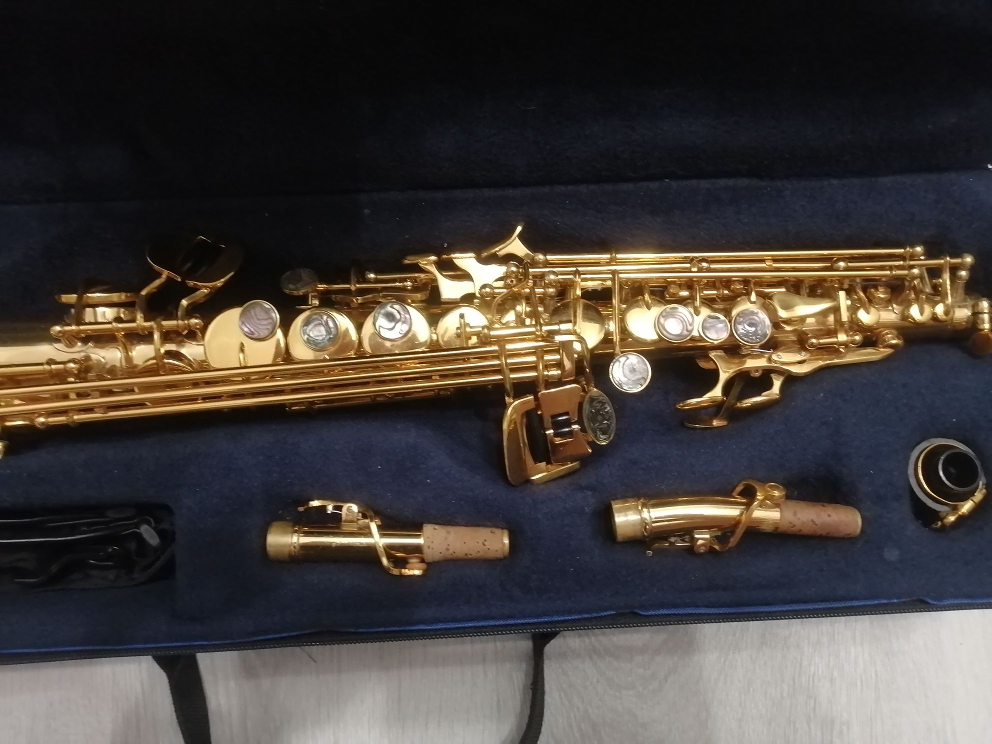 Очень известный бренд, хорошо зарекомендовавший себя на рынке духовых инструментов. Саксофон в очень достойном состоянии. Кроет и строит отлично. Звук чистый, яркий и правильный. Инструмент тембрит. На корпусе инструмента есть очень незначительные потертости (внимательно смотрите фото), которые на качество звука не влияют. Комплектация полная: саксофон, прямая эска, мундштук с лигатурой и колпачком , жёсткий родной фирменный чехол, трости, гайтан, наклейки на мундштук, смазка для пробки. Смотрите фото и видео.