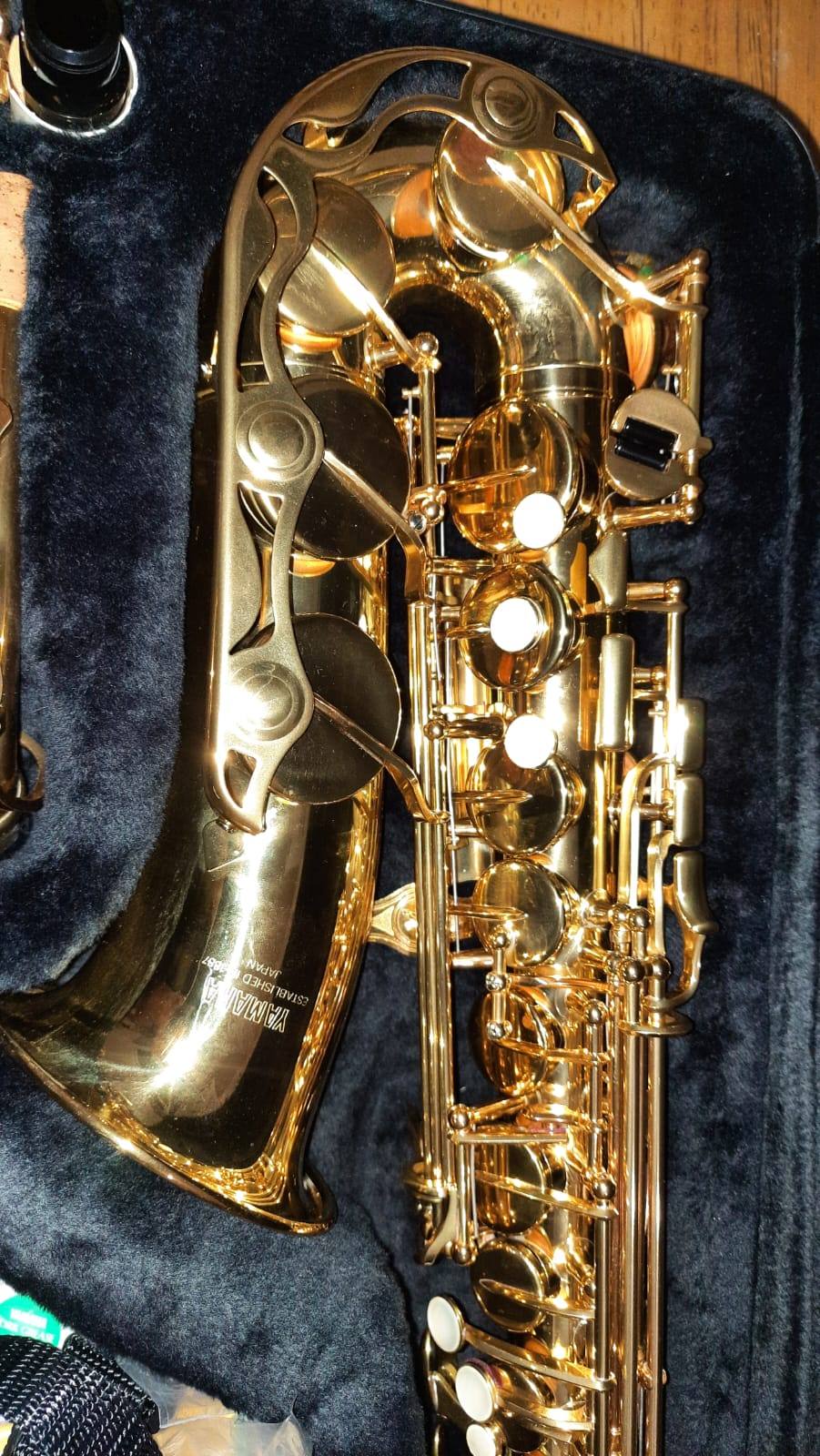 Комплектация полная: саксофон, эска, мундштук Yamaha 4c с лигатурой и колпачком , гайтан, фирменный очень удобный полужесткий кофр "Yamaha, трость.