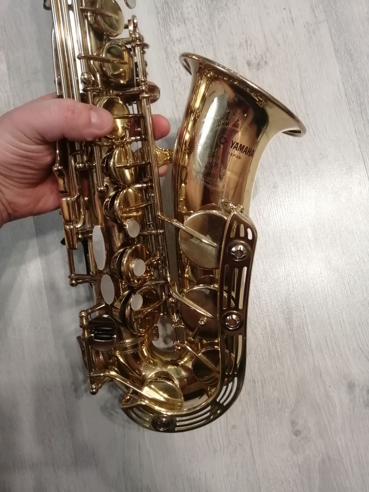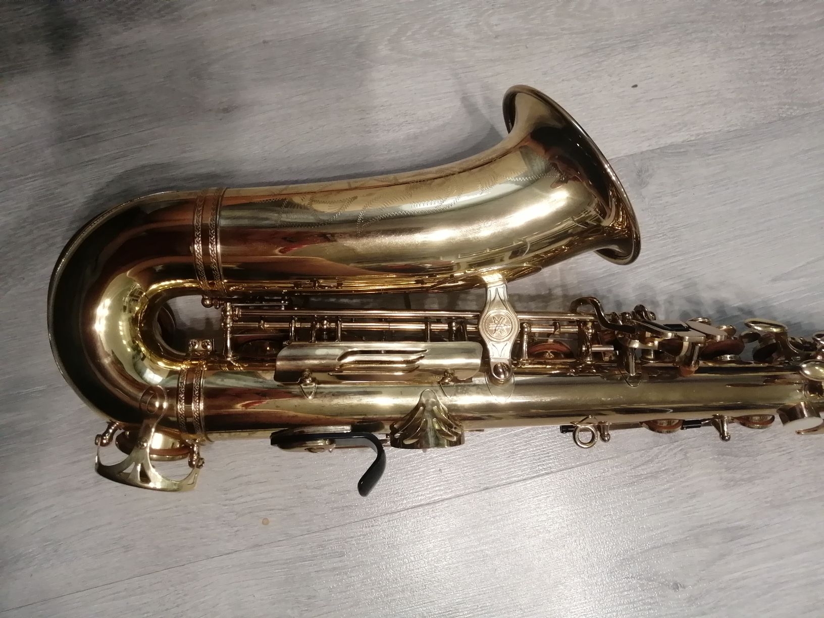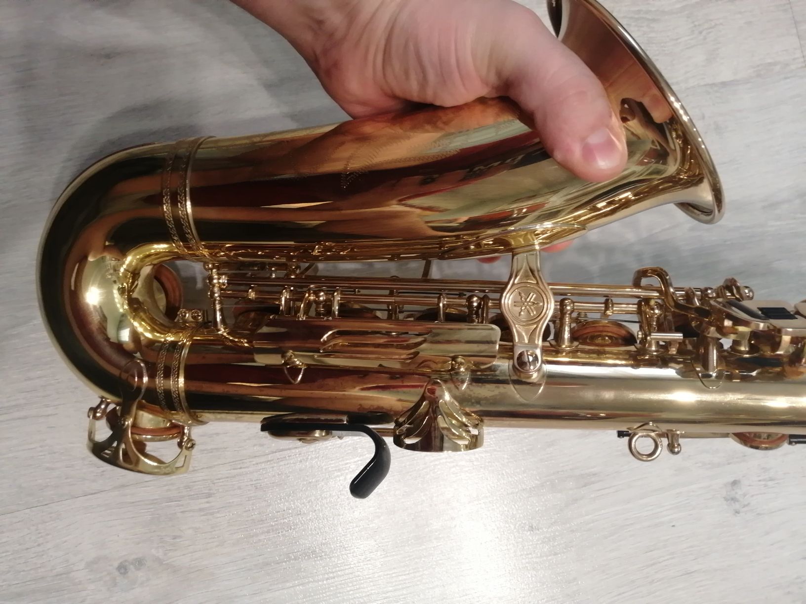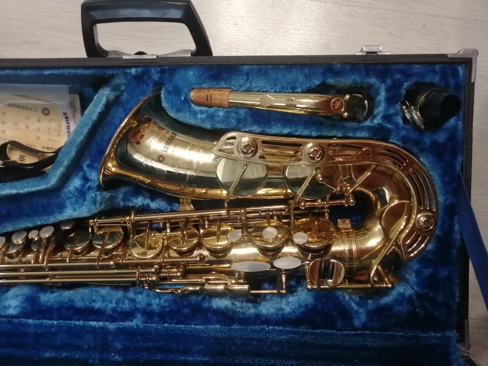 Комплектация полная: саксофон, эска, мундштук Yamaha 4c с лигатурой и колпачком, наклейки на мундштук, гайтан, фирменный очень удобный жесткий кофр "Yamaha", трость.