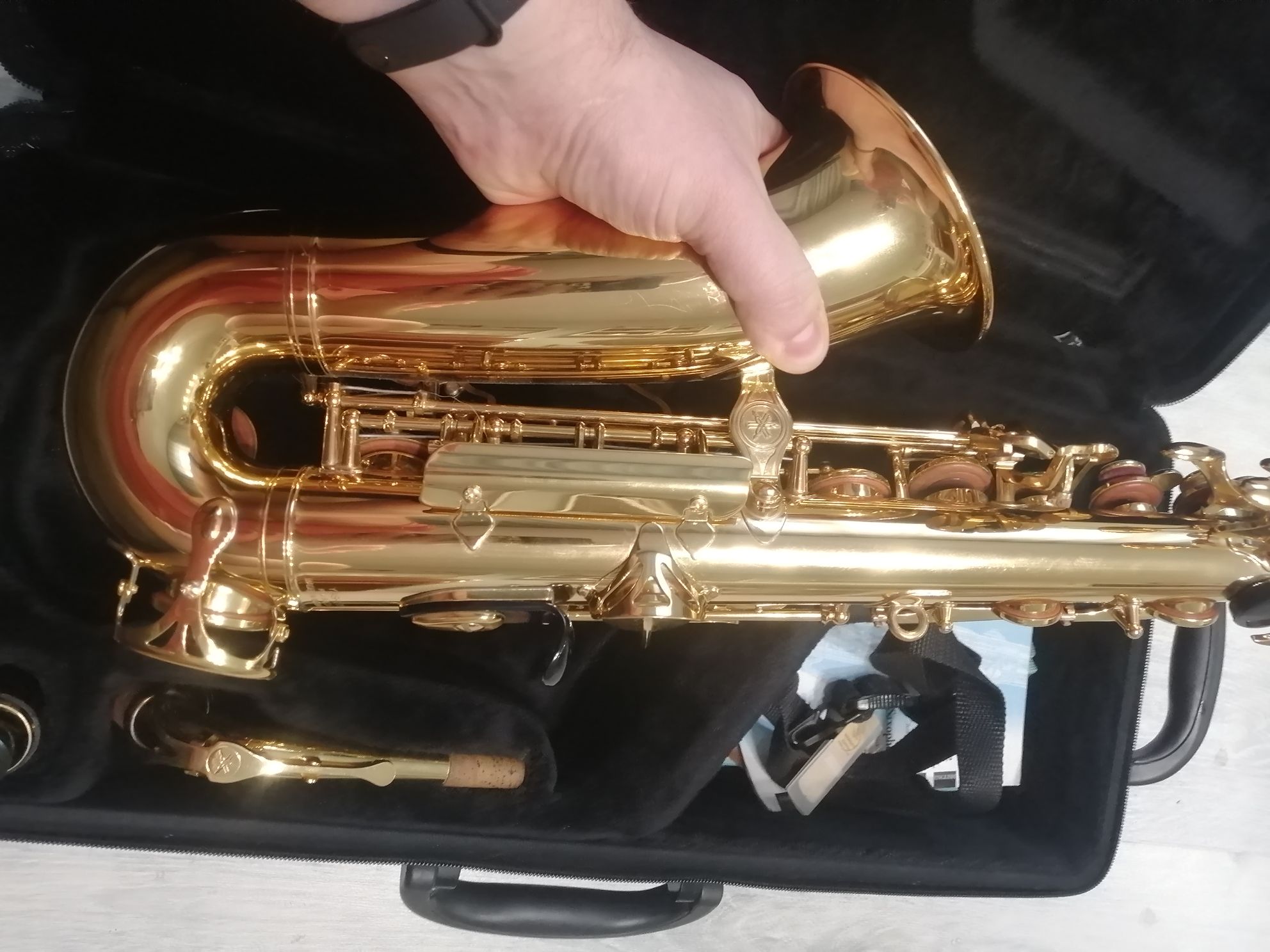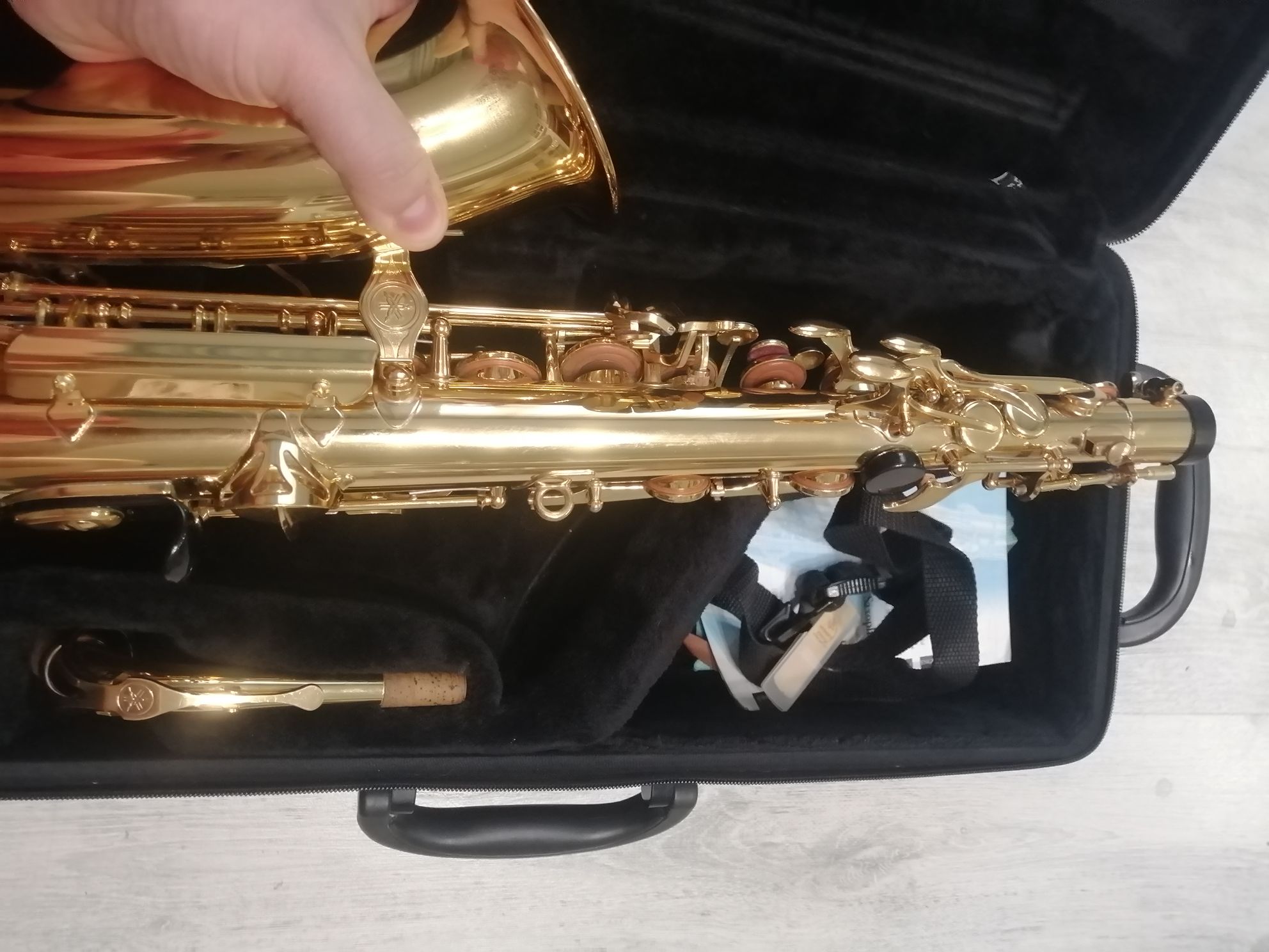 Комплектация полная: саксофон, эска, мундштук Yamaha 4c с лигатурой и колпачком , гайтан, фирменный очень удобный полужесткий кофр "Yamaha, трость.