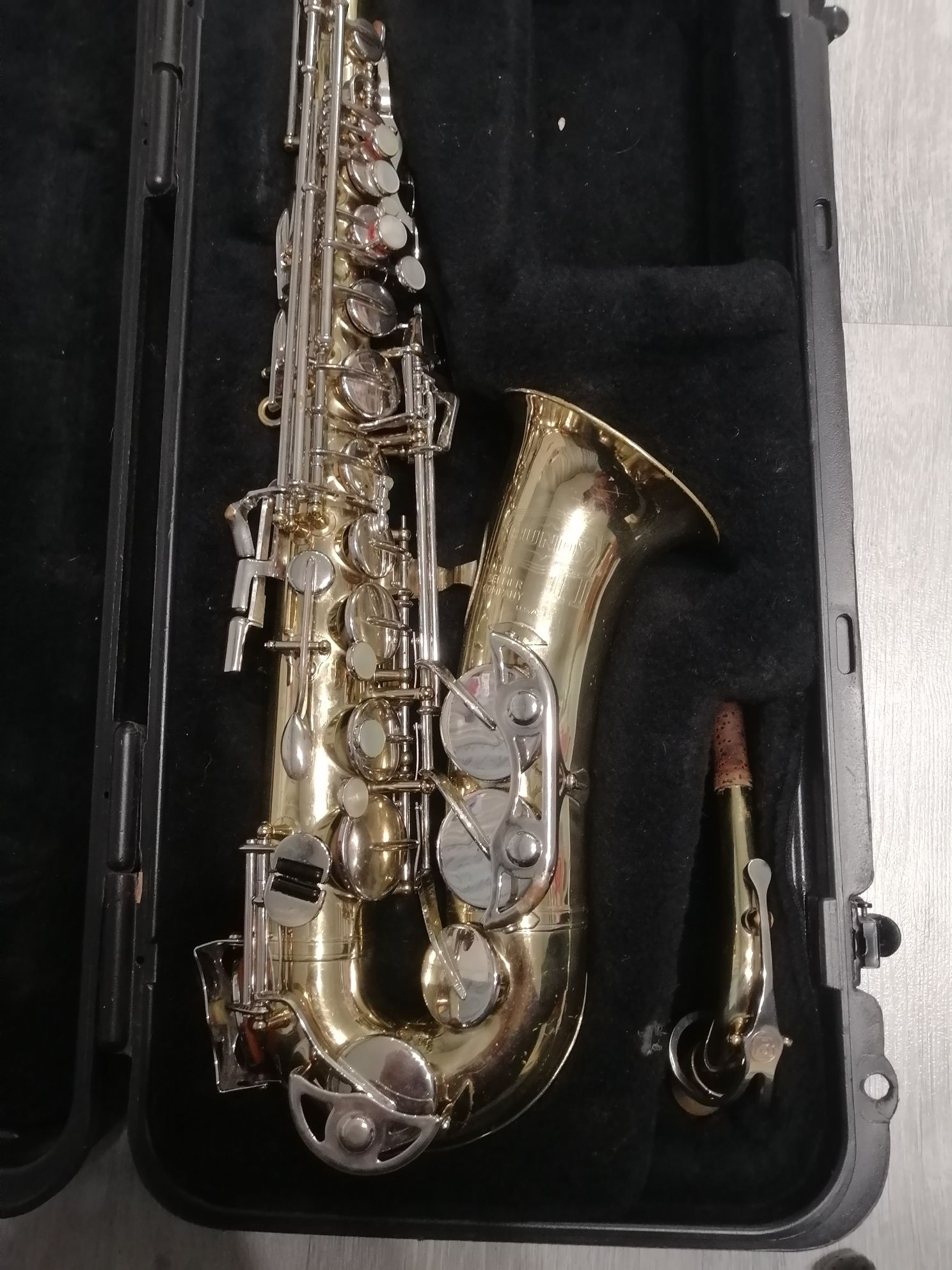 Комплектация полная: саксофон, эска, мундштук "Bundy" с лигатурой и колпачком, плечевой гайтан, жесткий фирменный кофр Selmer Bundy, трость.