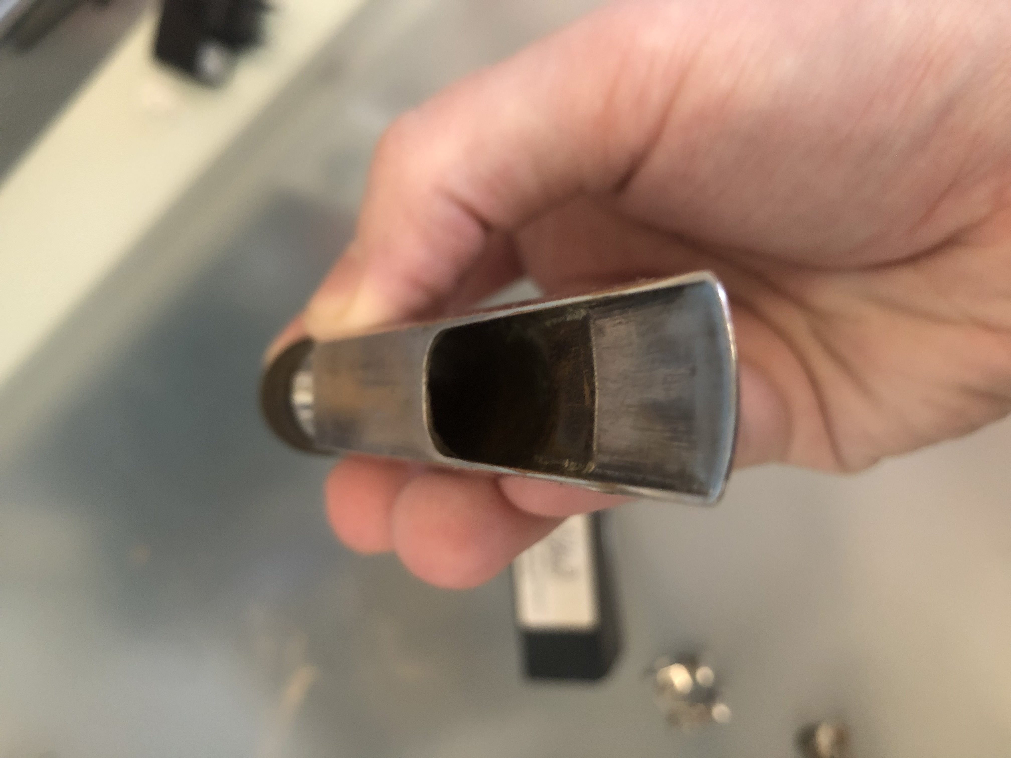 Замечательный мостовой мундштук, яркий и лёгкий на продув, подходит как для современной музыки, так и для джаза. Цена 40 т.р.
