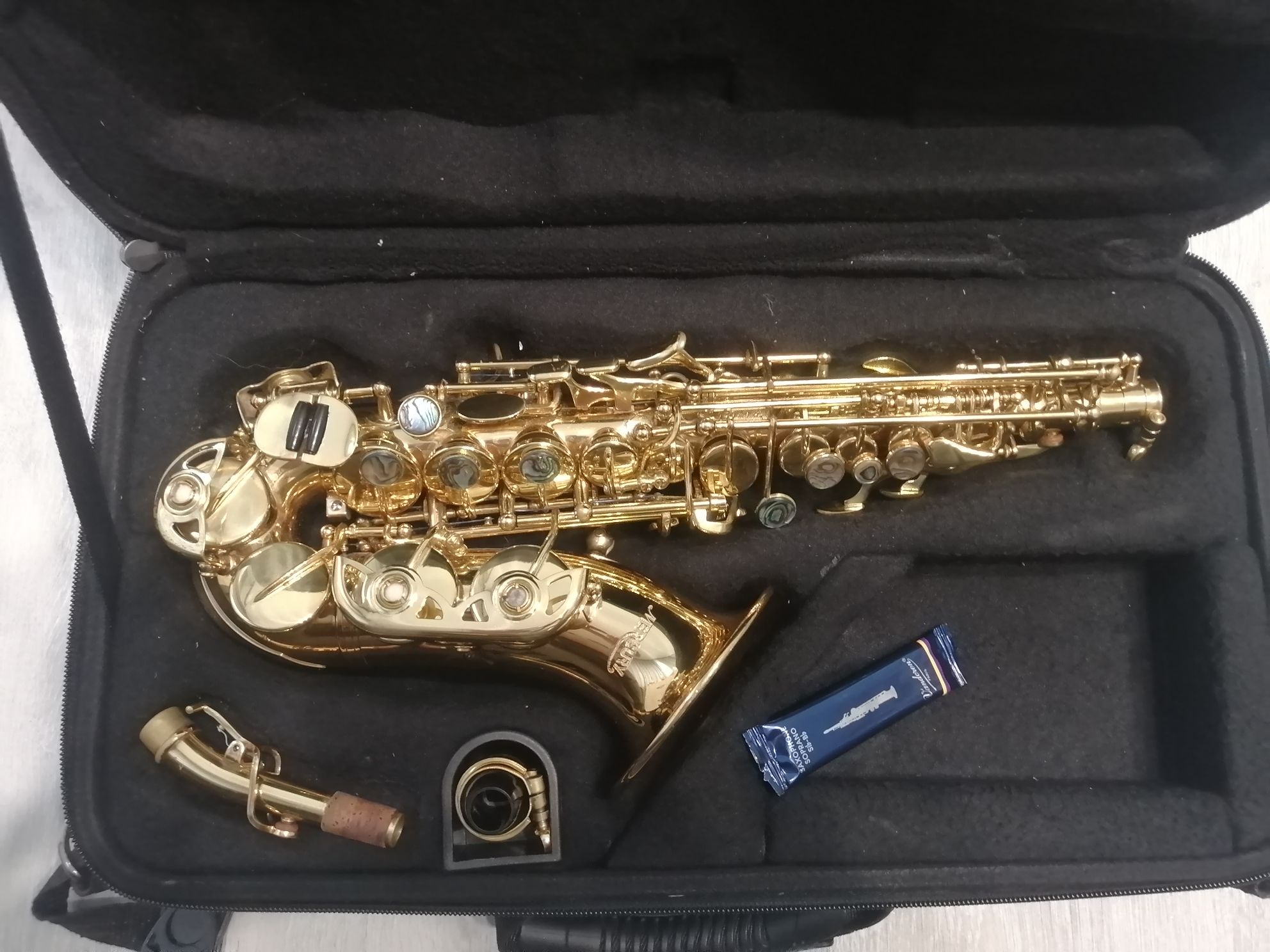 Комплектация полная: саксофон, эска, мундштук с лигатурой и колпачком , жёсткий родной фирменный чехол , трость, гайтан, наклейки на мундштук.