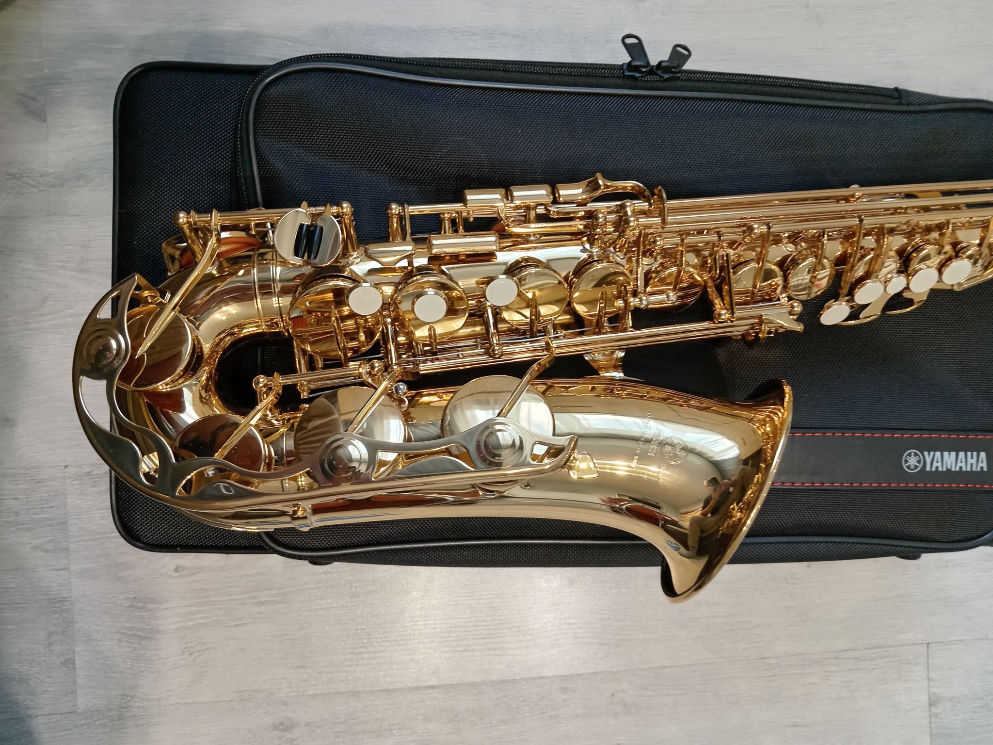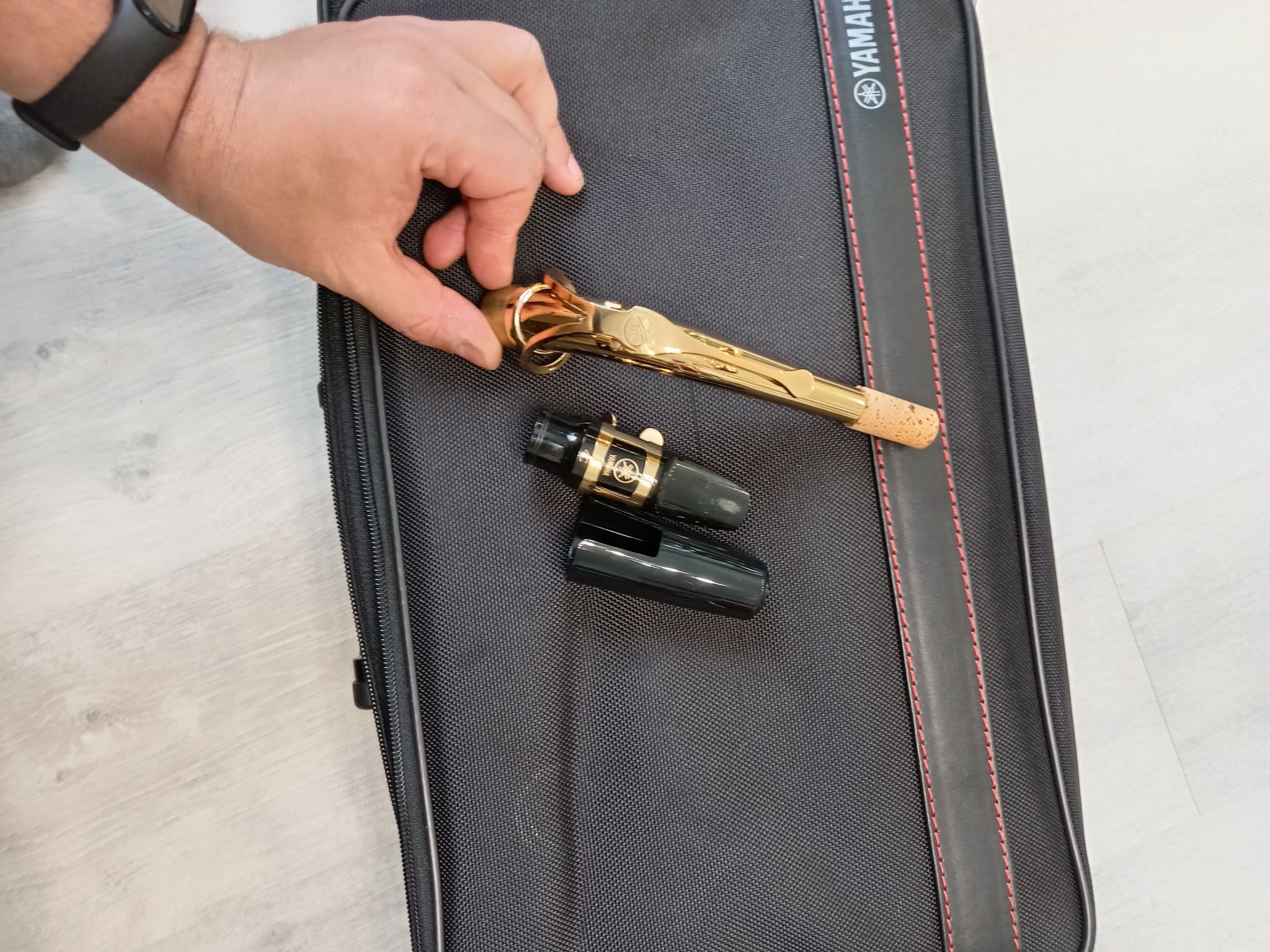 Комплектация полная: саксофон, эска, мундштук Yamaha 4c с лигатурой и колпачком , гайтан, фирменный очень удобный полужесткий кофр "Yamaha, трость.