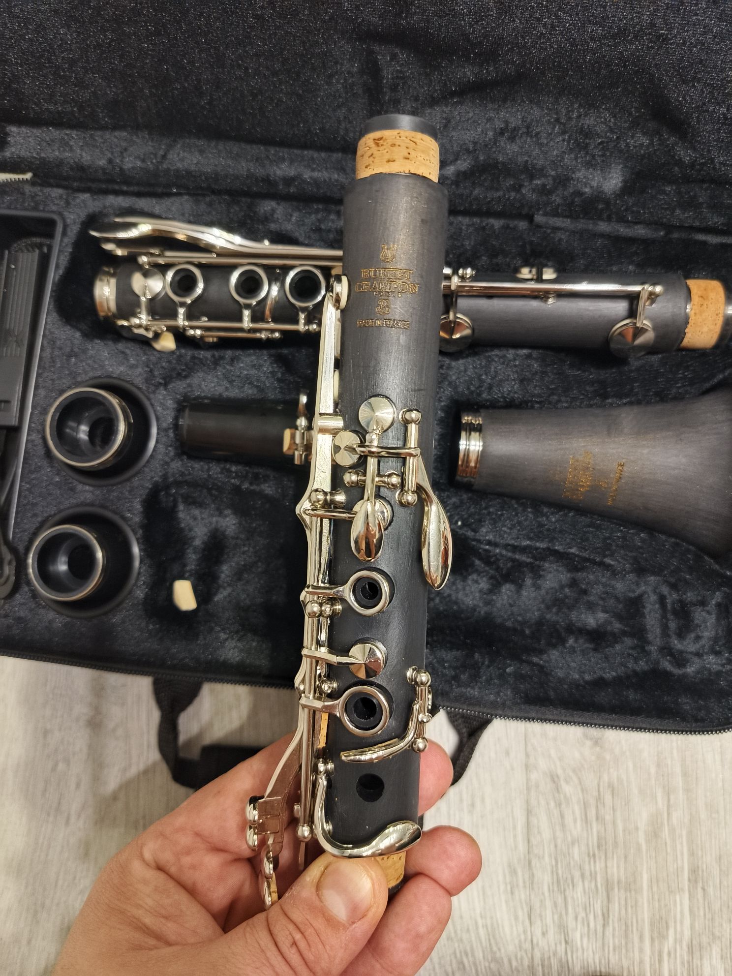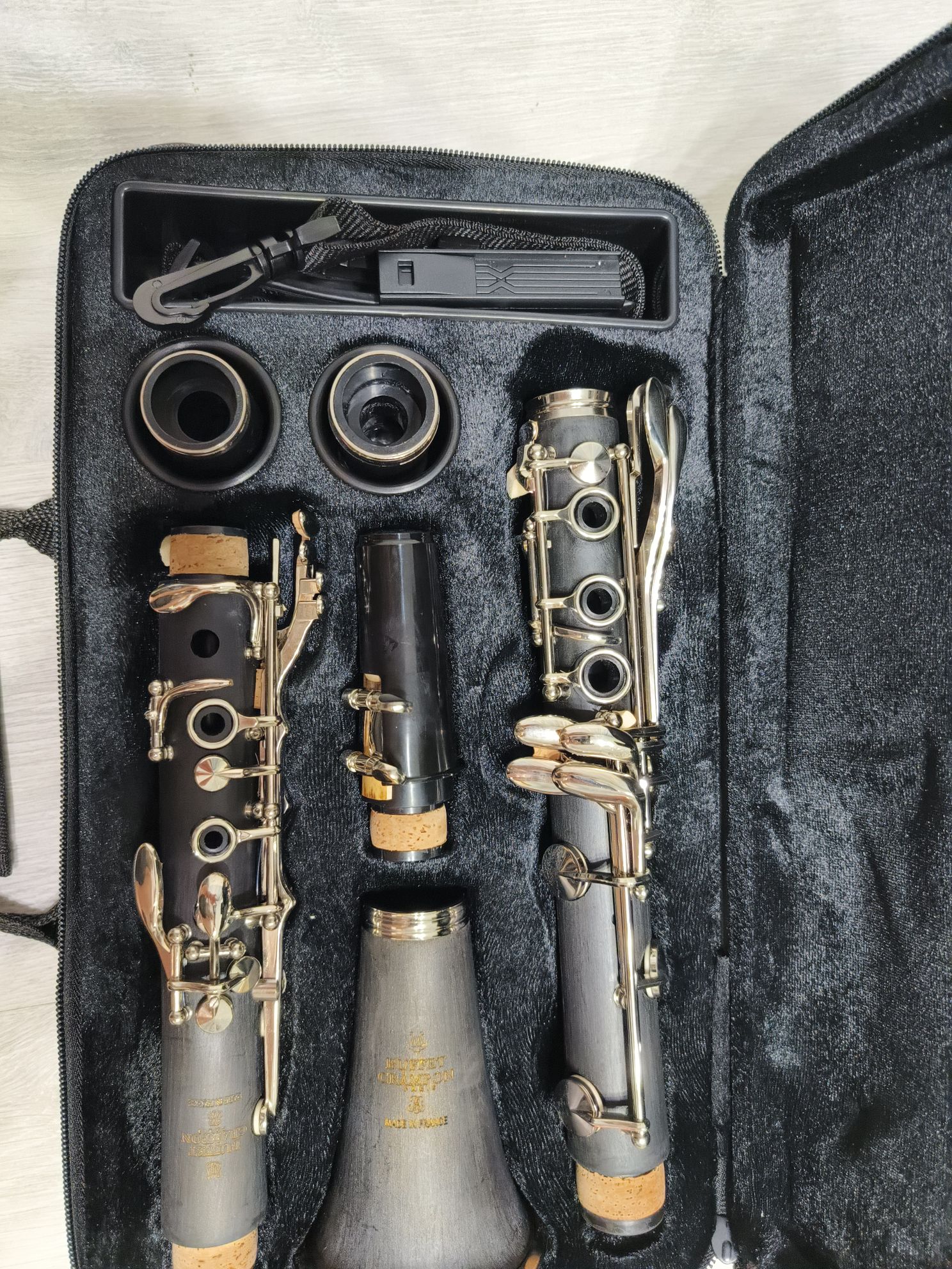 Продам абсолютно новый кларнет. Инструмент- реплика французского инструмента "Buffet E 11". Несмотря на то, что кларнет произведён в Китае, звучит он превосходно. Очень стройный и достойный инструмент. Комплектация полная: кларнет, 2 бочонка, мундштук, трость, чехол, регулировочная отвёртка.