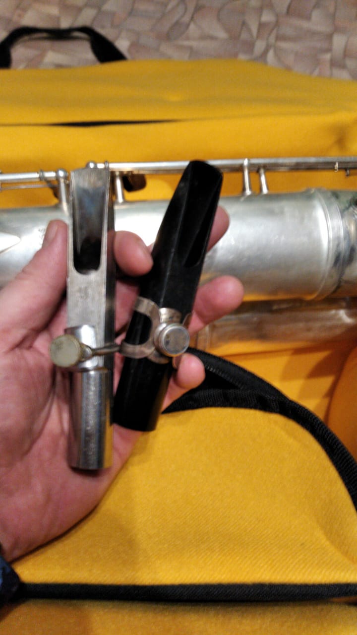 В комплекте новый мягкий чехол сшитый на заказ. Пара мундштуков и пластиковая трость Legere.