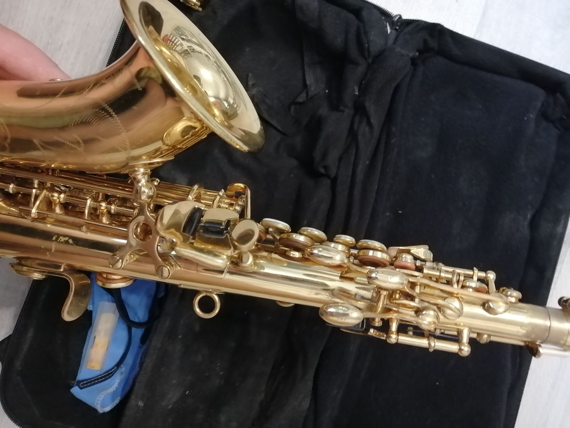 На корпусе саксофона есть очень незначительные потертости (внимательно смотрите фото), которые на качество звука не влияют. Если нужно, Комплектация полная: саксофон, эска, мундштук с лигатурой и колпачком , жёсткий родной фирменный чехол , трости, гайтан, наклейки на мундштук, смазка для пробки. На пересылку по России согласен. Цену в 24 тысячи рублей считаю вполне адекватной.